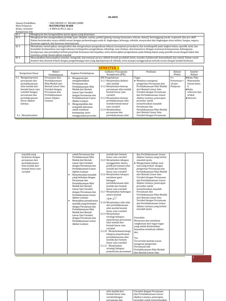 Silabus matematika wajib sma kurikulum 2013 ini dapat menjadi pedoman guru dalam penyusunan perangkat pembelajaran tahun pelajaran .